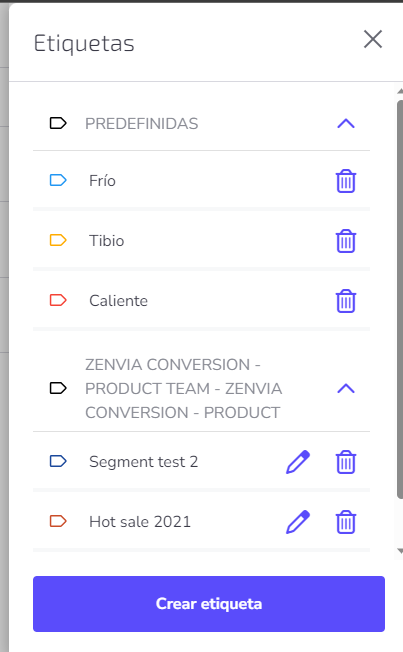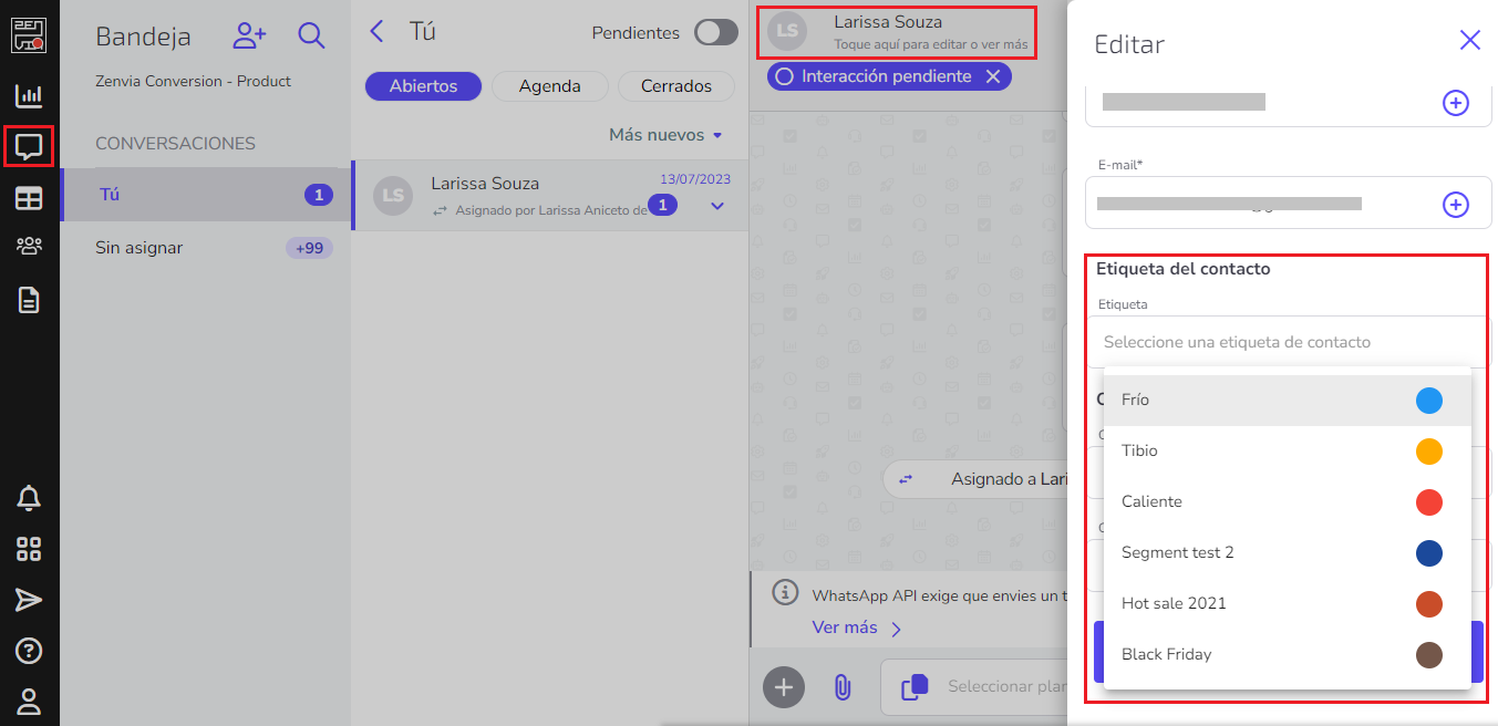 4. Presiona Crear y listo. Tus operadores podrán editar tus contactos agregándoles etiquetas.
