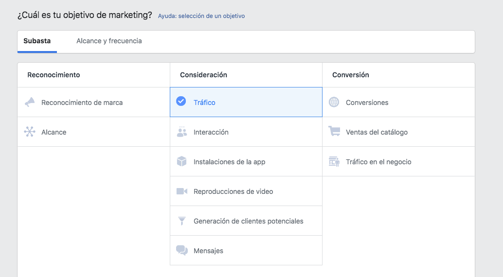 5 - En la sección de Tráfico selecciona WhatsApp y tu página. Deberás ser administrador de la misma para continuar: