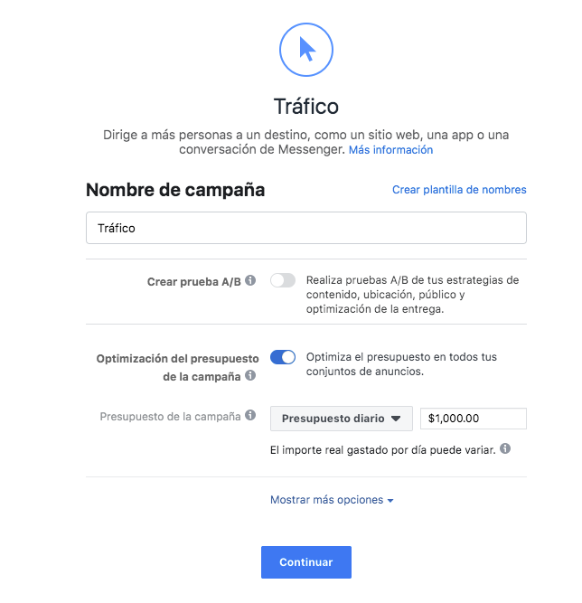 4 - Más abajo te aparecerá la configuración. Presiona Continuar: