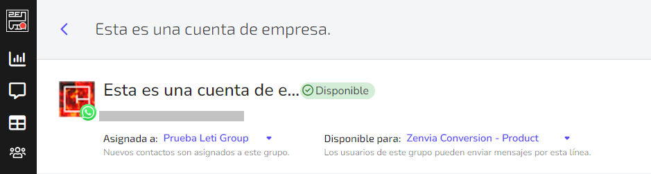 Por ejemplo, en la imagen superior. Los nuevos contactos que ingresen por WhatsApp serán atendidos por los usuarios del grupo Prueba Leti pero la línea está disponible para el grupo padre Zenvia Conversion - Product lo que permite que el resto de los usuarios puedan comunicarse con los contactos de otros orígenes por la línea de WhastApp.