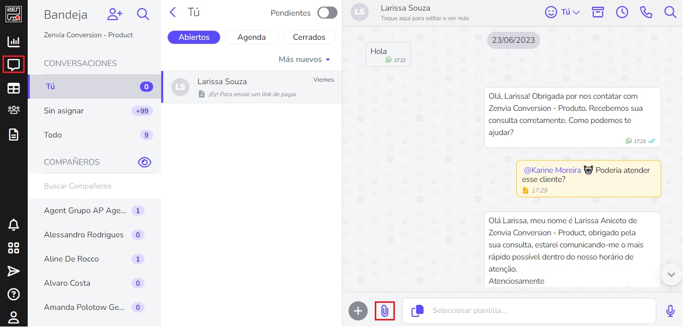1 - Presiona el ícono de adjuntar ubicado sobre la barra inferior de tu conversación y selecciona Ubicación: