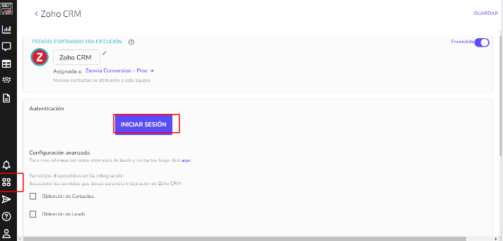 1- Dirígete a Integraciones > selecciona el canal Zoho CRM.