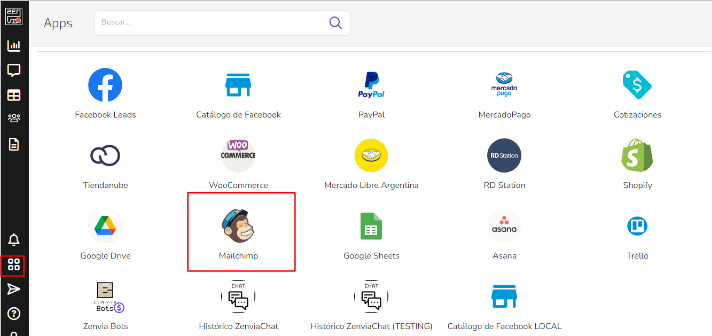 1- Ve a Zenvia Conversion y busca la App de Mailchimp en la sección de Integraciones.