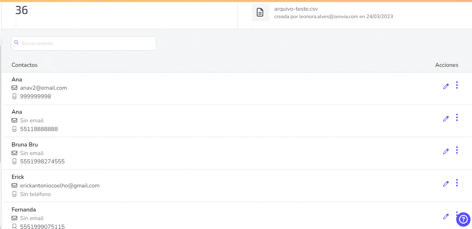 A continuación, detallamos las funcionalidades del gestor de contactos de Zenvia Attraction.