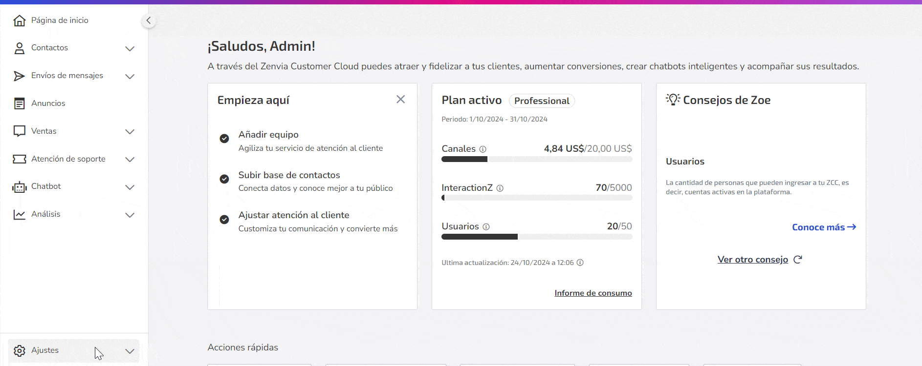 Los usuarios son personas que van a acceder y usar efectivamente Zenvia Customer Cloud. Pueden ser asignados a grupos de atención según sea necesario.