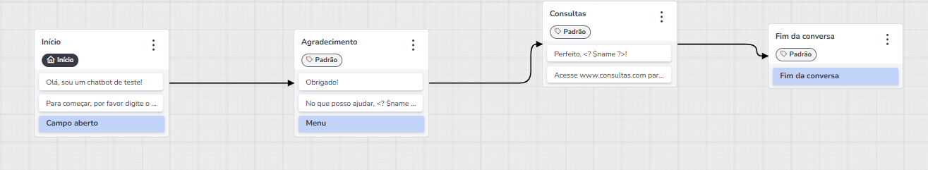 De esta manera, el chatbot reemplazará <?$name?> con el nombre del usuario recopilado anteriormente, haciendo la interacción más personalizada.