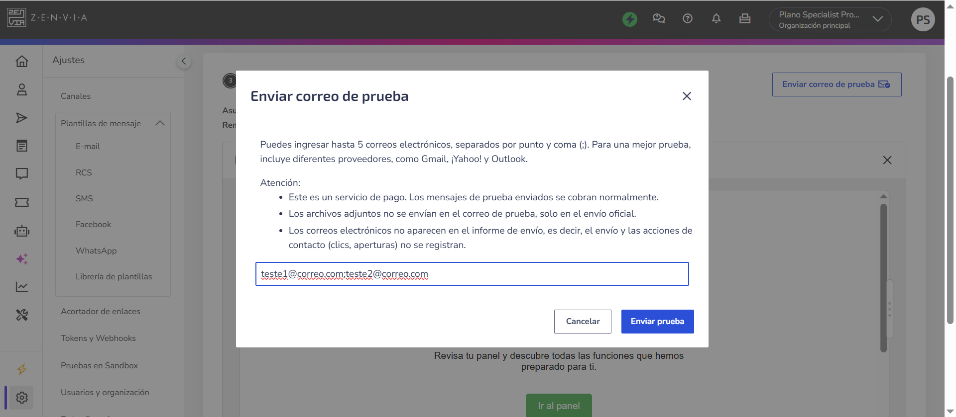 ⚠️ Atención: Antes de realizar el envío de prueba, ten en cuenta que: