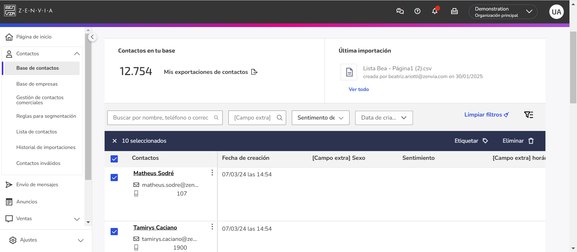 Introducción a la base de contactos de Zenvia Customer Cloud