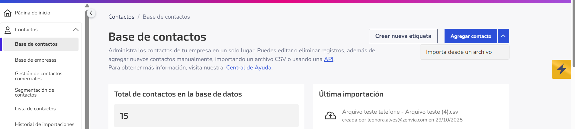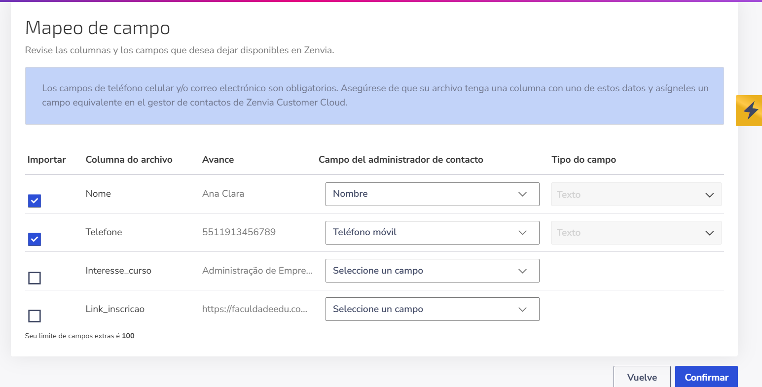 Importar contactos a Zenvia Customer Cloud
