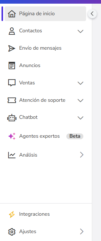 CanalEnvío de mensajesVentasSoporteChatbotAgentes expertos
