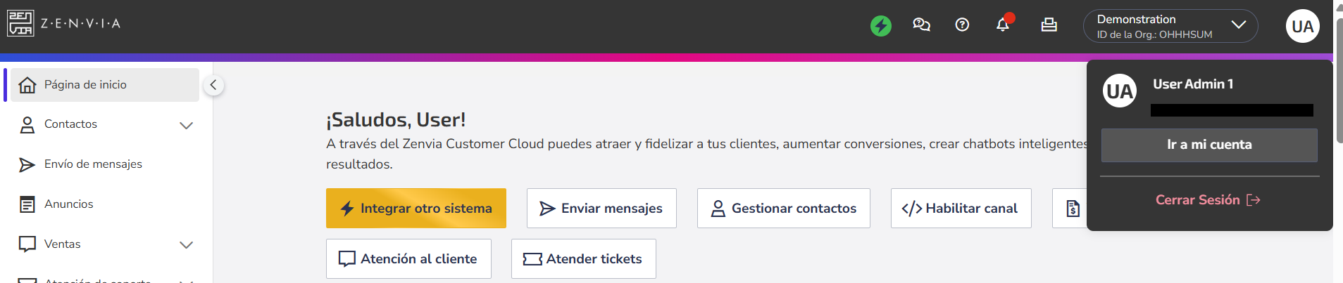 1. Vaya a app.zenvia.com y, si aún no ha iniciado sesión, hágalo con el nombre de usuario y la contraseña actuales de la cuenta que desea actualizar.