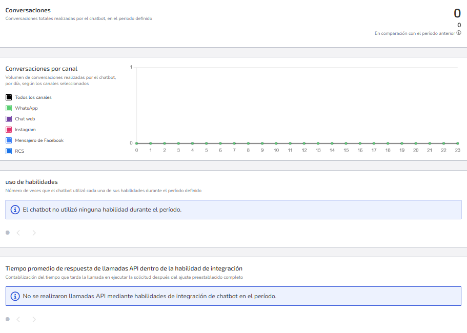 Presenta la frecuencia con la que el chatbot utilizó sus habilidades en el periodo. Si no se usó ninguna habilidad, se mostrará un mensaje.