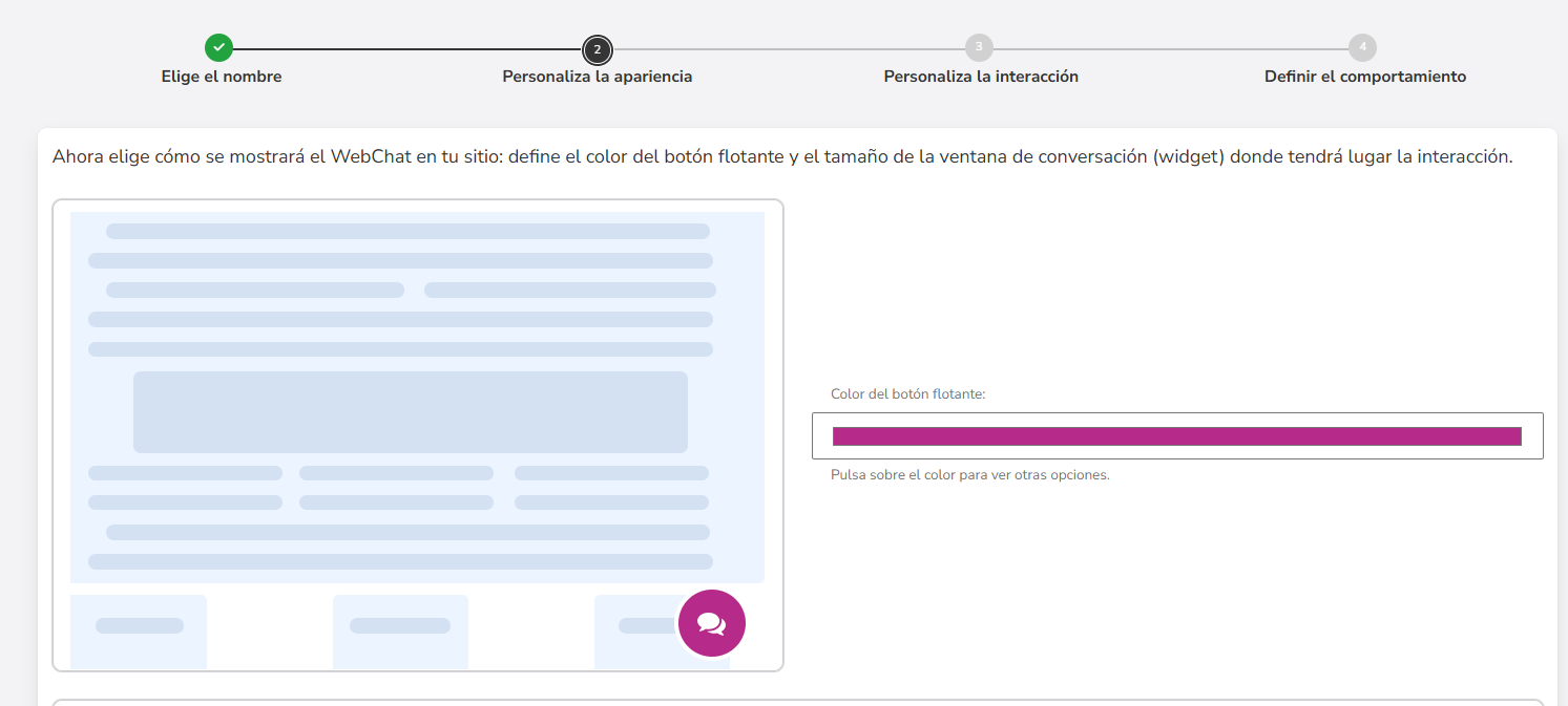 - Color del botón flotante: elige un color que combine con la identidad visual de tu marca.