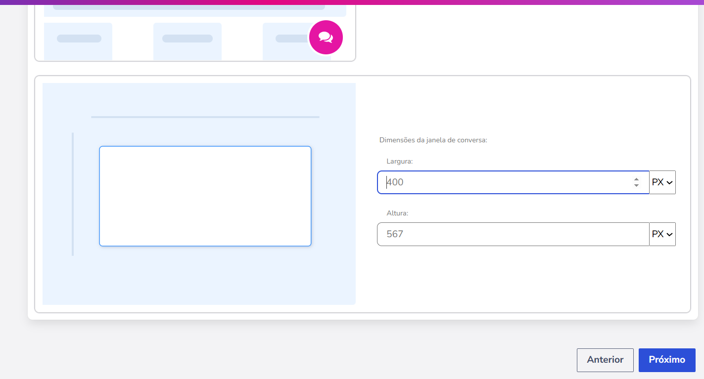 - Tamaño de la ventana de conversación (widget): el tamaño recomendado es 400px de ancho por 567px de alto, garantizando buena usabilidad en diferentes dispositivos.