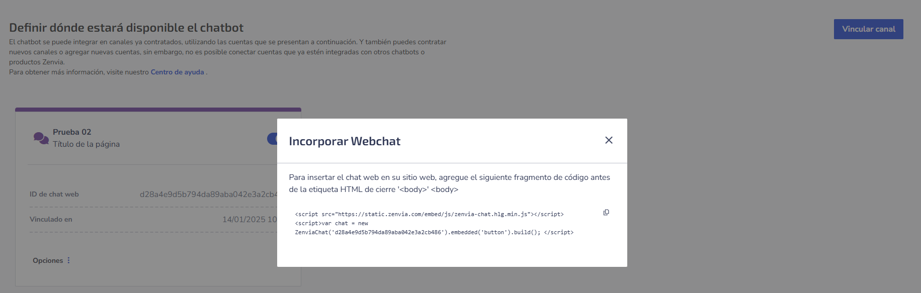 Paso 1: Vincular el Chat Web al Chatbot en Zenvia Customer Cloud