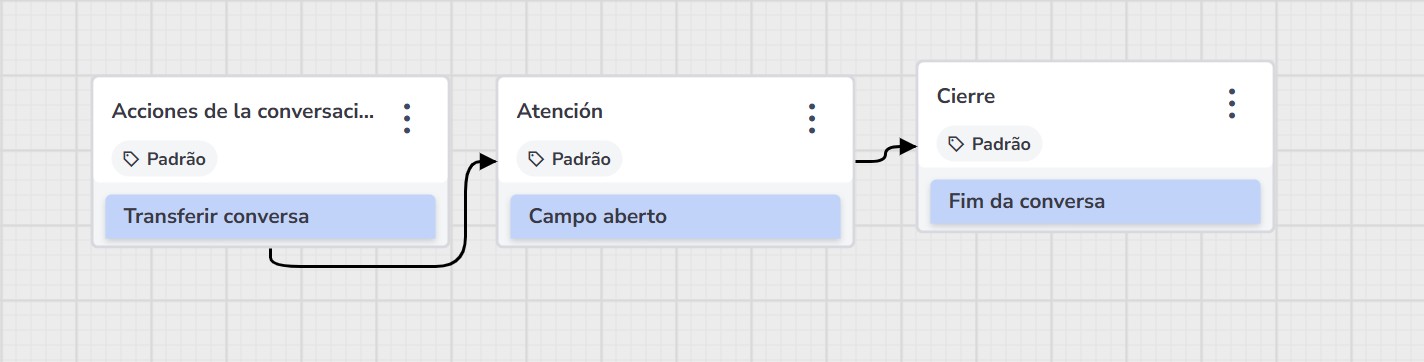 Para que este traspaso funcione, necesitarás crear tres partes (bloques) dentro de tu flujo de conversación:
