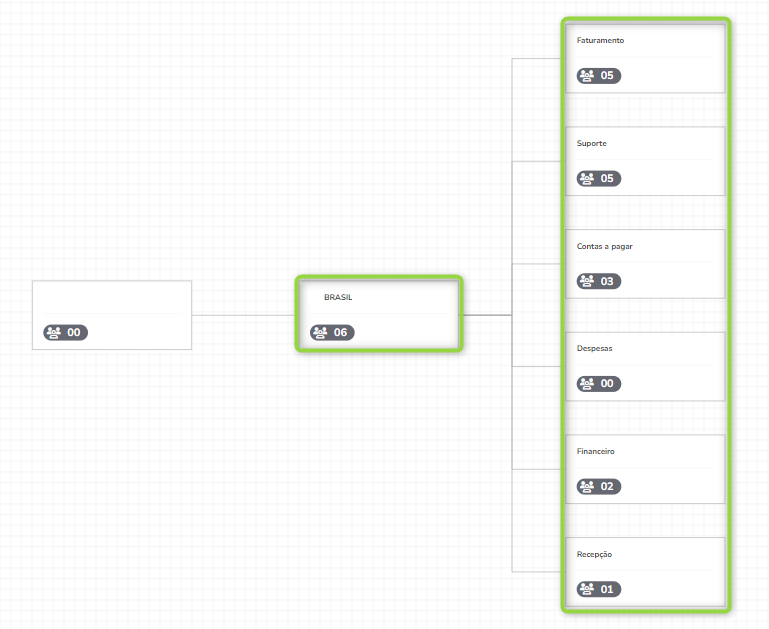 Escenario 2: Si la misma línea se asigna al grupo Financeiro, solo ese grupo (y sus subgrupos, si los hay) tendrán acceso a la línea. Los otros grupos ya no tendrán acceso a esa línea.