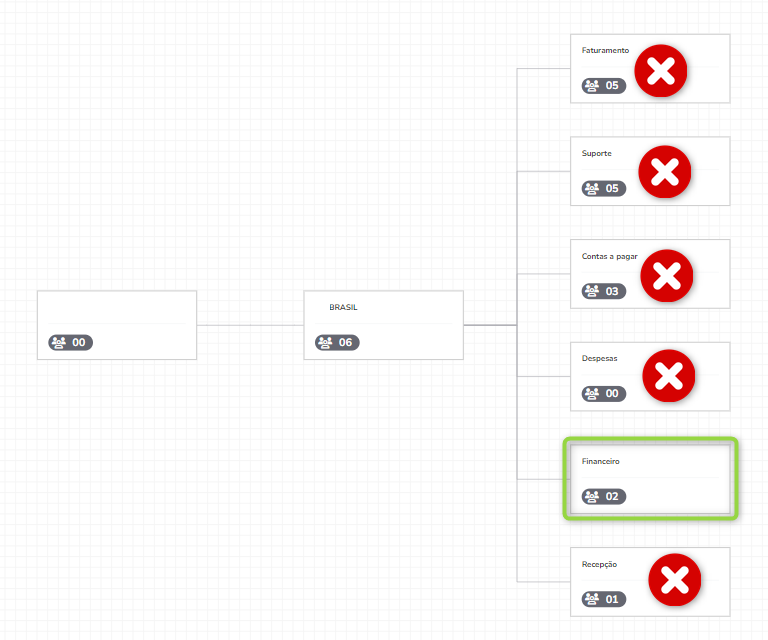 Escenario 2: Si la misma línea se asigna al grupo Financeiro, solo ese grupo (y sus subgrupos, si los hay) tendrán acceso a la línea. Los otros grupos ya no tendrán acceso a esa línea.