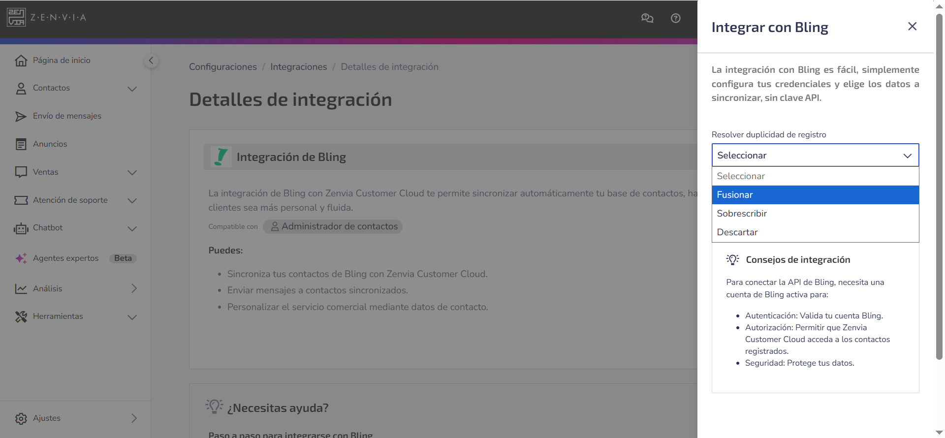 💡 Tip: Para comprender más sobre esta integración, consulta el artículo Visión general de Bling.
