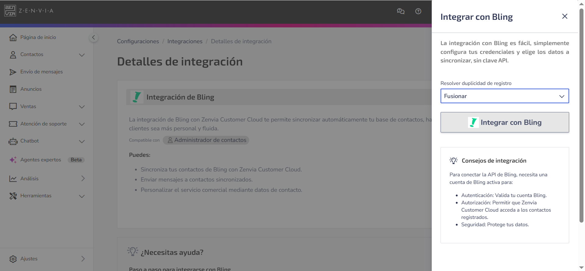 💡 Tip: Para comprender más sobre esta integración, consulta el artículo Visión general de Bling.