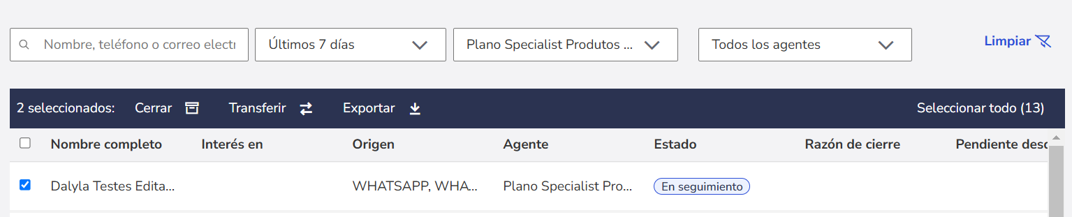 Realizar acciones masivas: Cerrar, transferir y exportar contactos