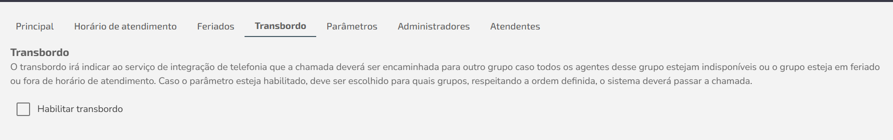 Horario de atención: Define los horarios en los que se pueden recibir llamadas. Si eliges no utilizar un horario de atención, las llamadas serán transferidas siempre que haya un agente del grupo en línea, sin importar el día ni la hora. Si optas por utilizar un horario de atención, además de haber un agente en línea, también será necesario que esté dentro del horario establecido.