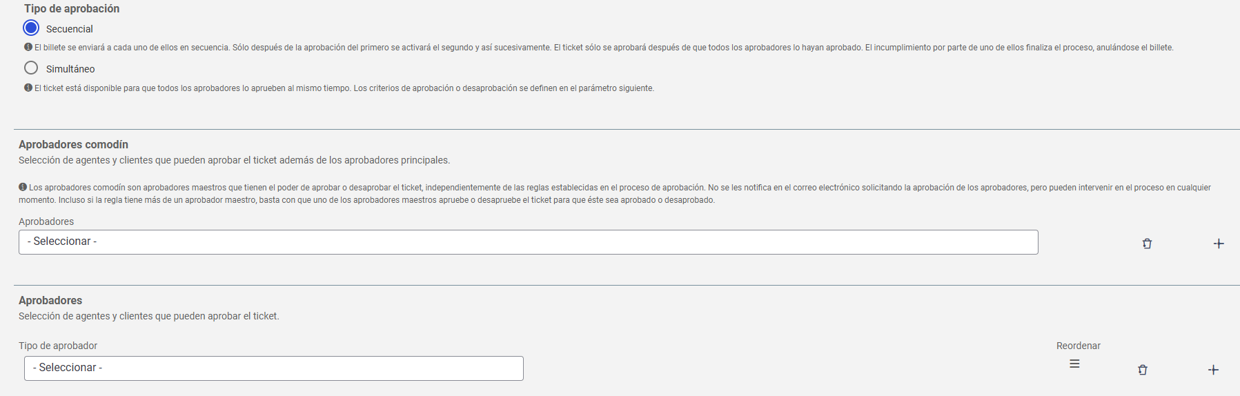 7. En Aprobadores comodines, seleccione quién puede aprobar o rechazar el ticket y será notificado por correo electrónico;