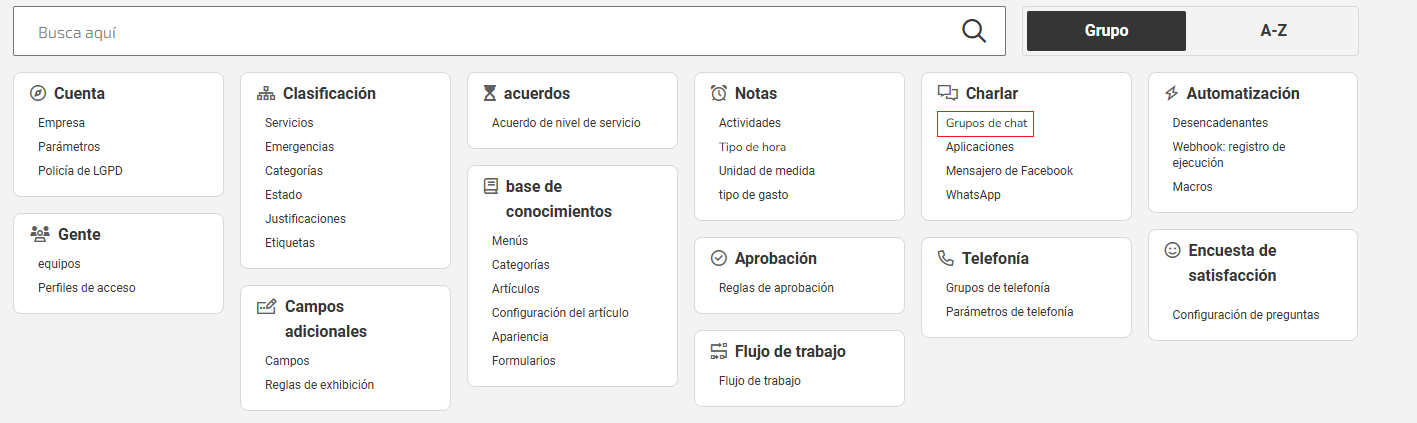 Visita el artículo Configuración del chat: Grupos, Aplicaciones, Facebook Messenger y WhatsApp para obtener más información.
