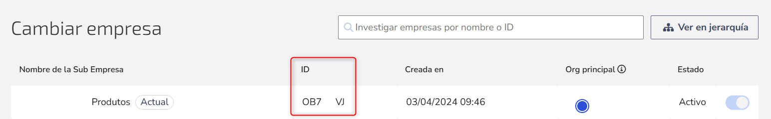 1. ID de la organización (ID ORG): Ubicado en el perfil de tu organización. Para ello, haz clic en el nombre de la organización > Gestionar organizaciones.