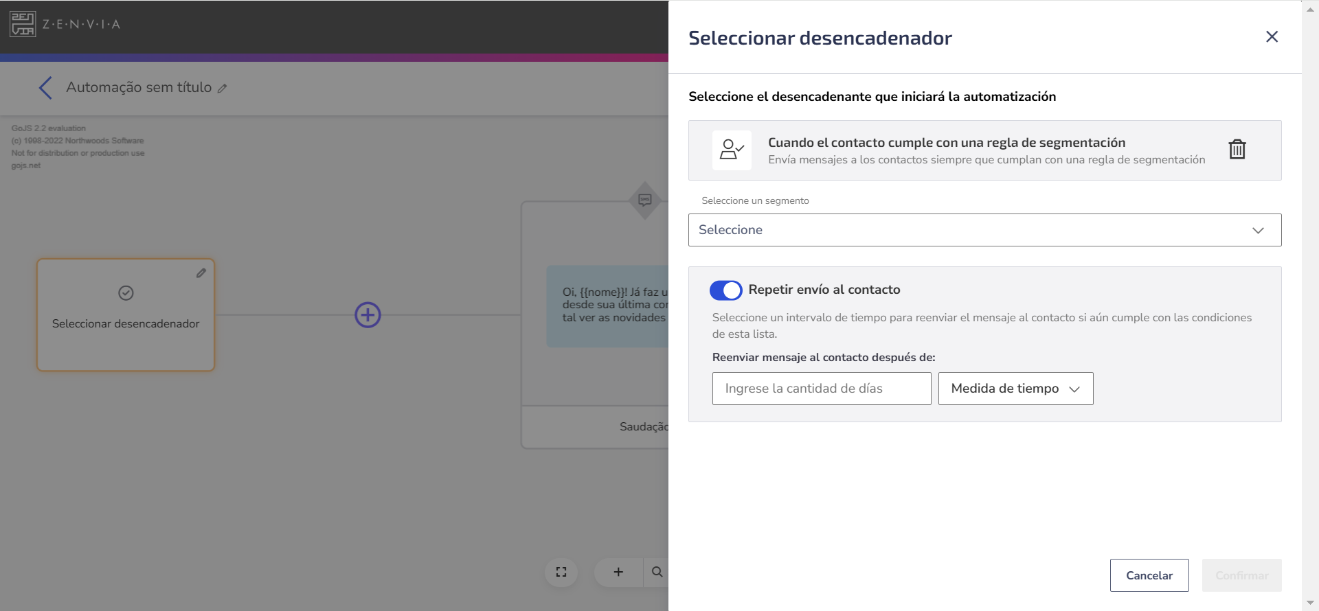 - Cantidad de días: Intervalo de inactividad antes de impactar al contacto nuevamente.