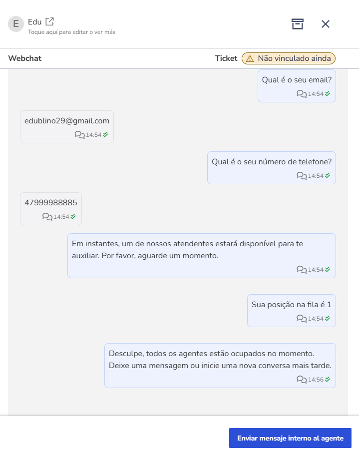 💡Tip: Todos los mensajes internos intercambiados entre el Administrador y el agente quedan guardados en el Historial de Atención.
