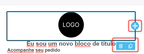 Puedes reorganizar fácilmente bloques y filas. Haz clic en el elemento y selecciona la acción: