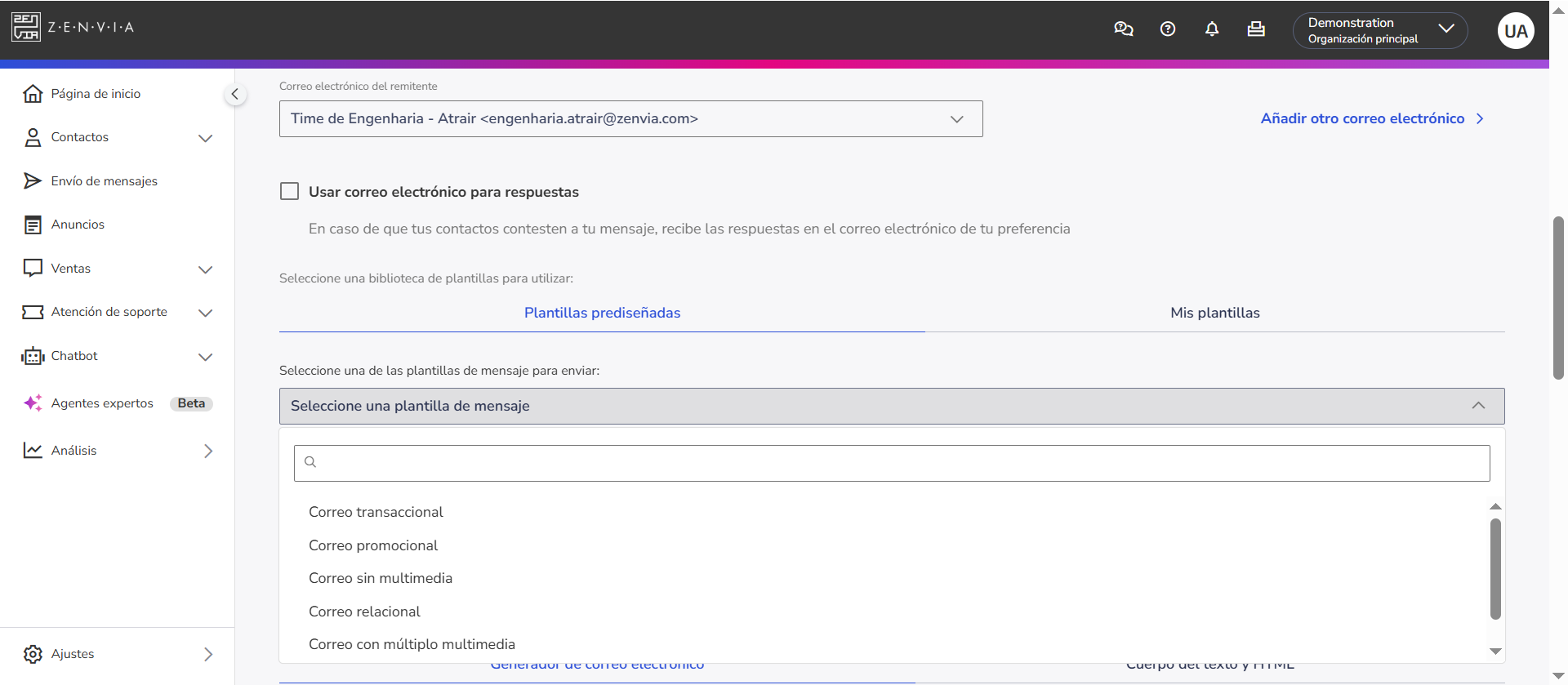 • Elegir una plantilla prediseñada de Zenvia;