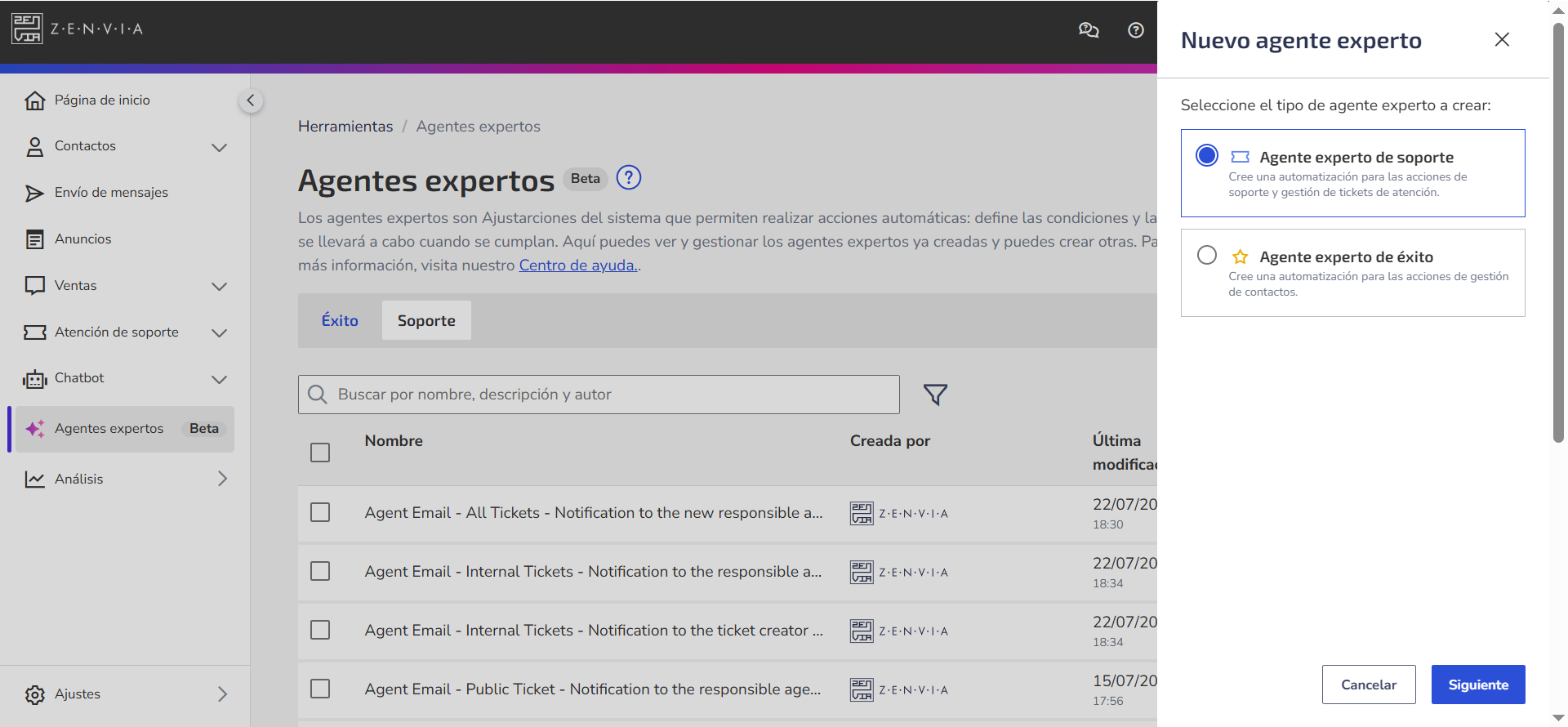 - Elige la opción Agente experto de soporte y haz clic en Siguiente.