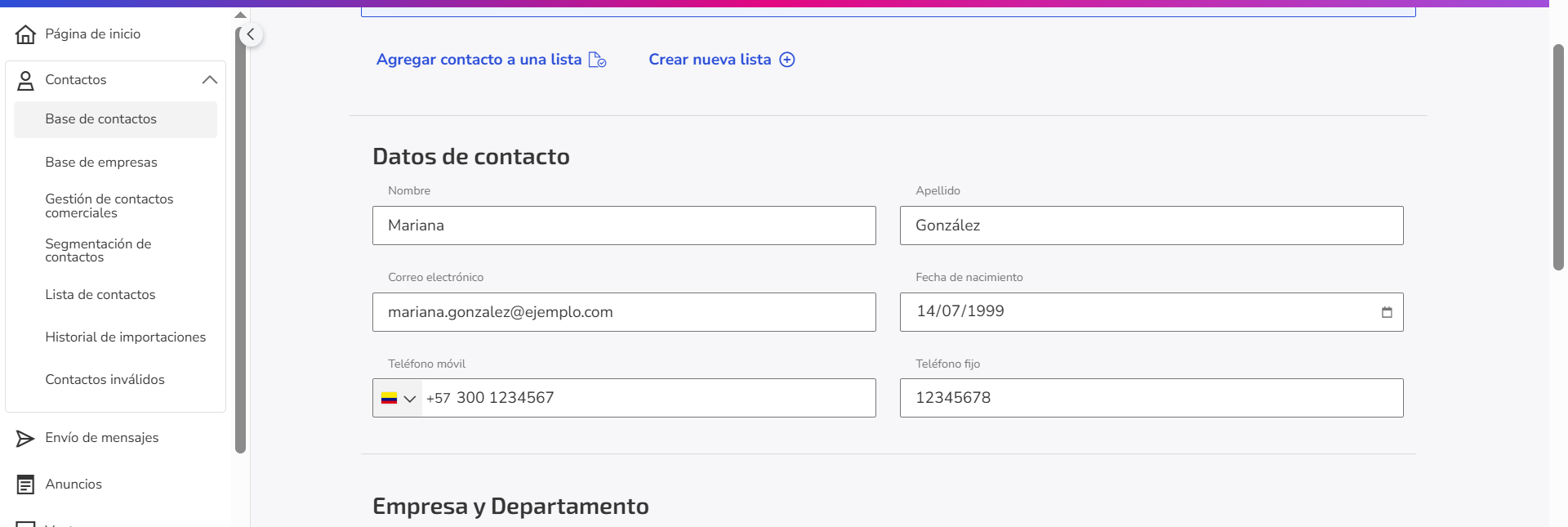 ⚠️ Atención: Lo mismo aplica para teléfono fijo, correo electrónico y dirección; esta última no es clave única, pero también puede ser agregada.