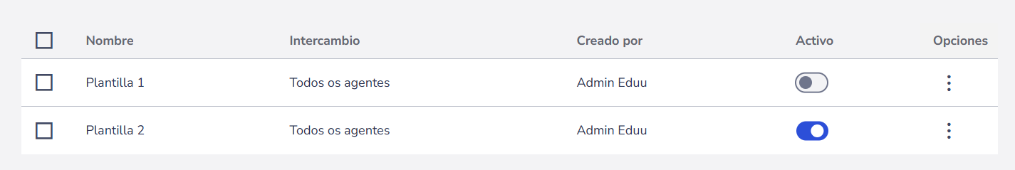 En esta pantalla es posible crear, editar, clonar o eliminar plantillas existentes.