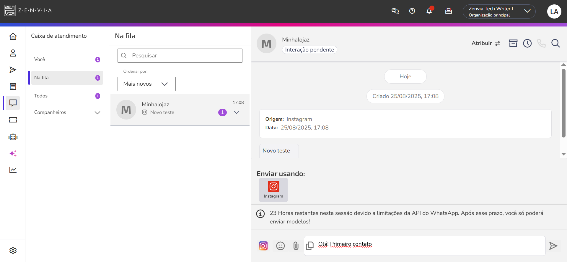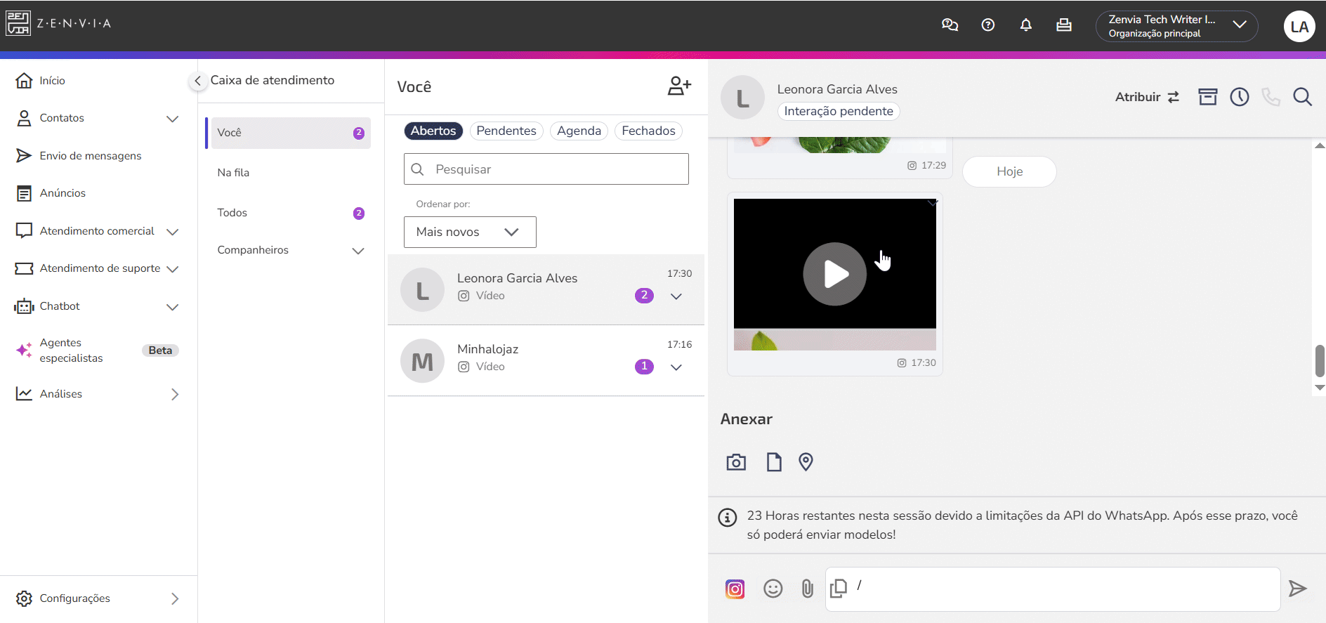Envíe y reciba mensajes del Direct de Instagram directamente en la bandeja de entrada comercial de Zenvia Customer Cloud, centralizando el flujo de conversaciones y garantizando agilidad en la atención.