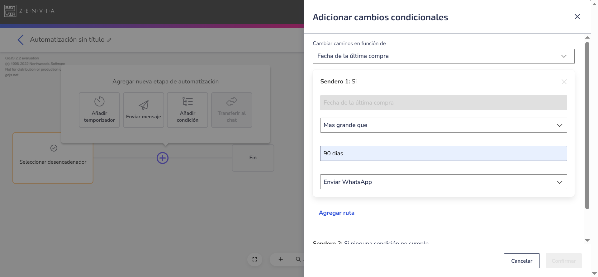 Esta flexibilidad permite personalizar el flujo de comunicación en función del comportamiento reciente de compra.