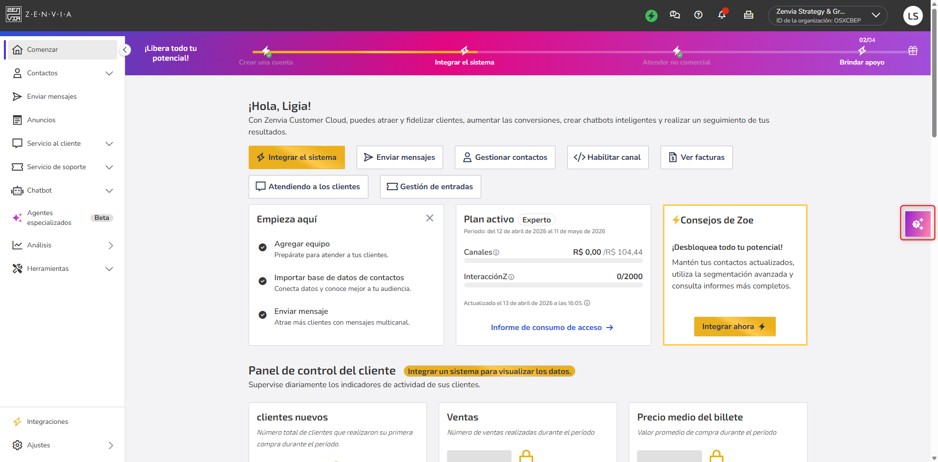 1. Ingresa a la App Zenvia e inicia sesión en tu cuenta.